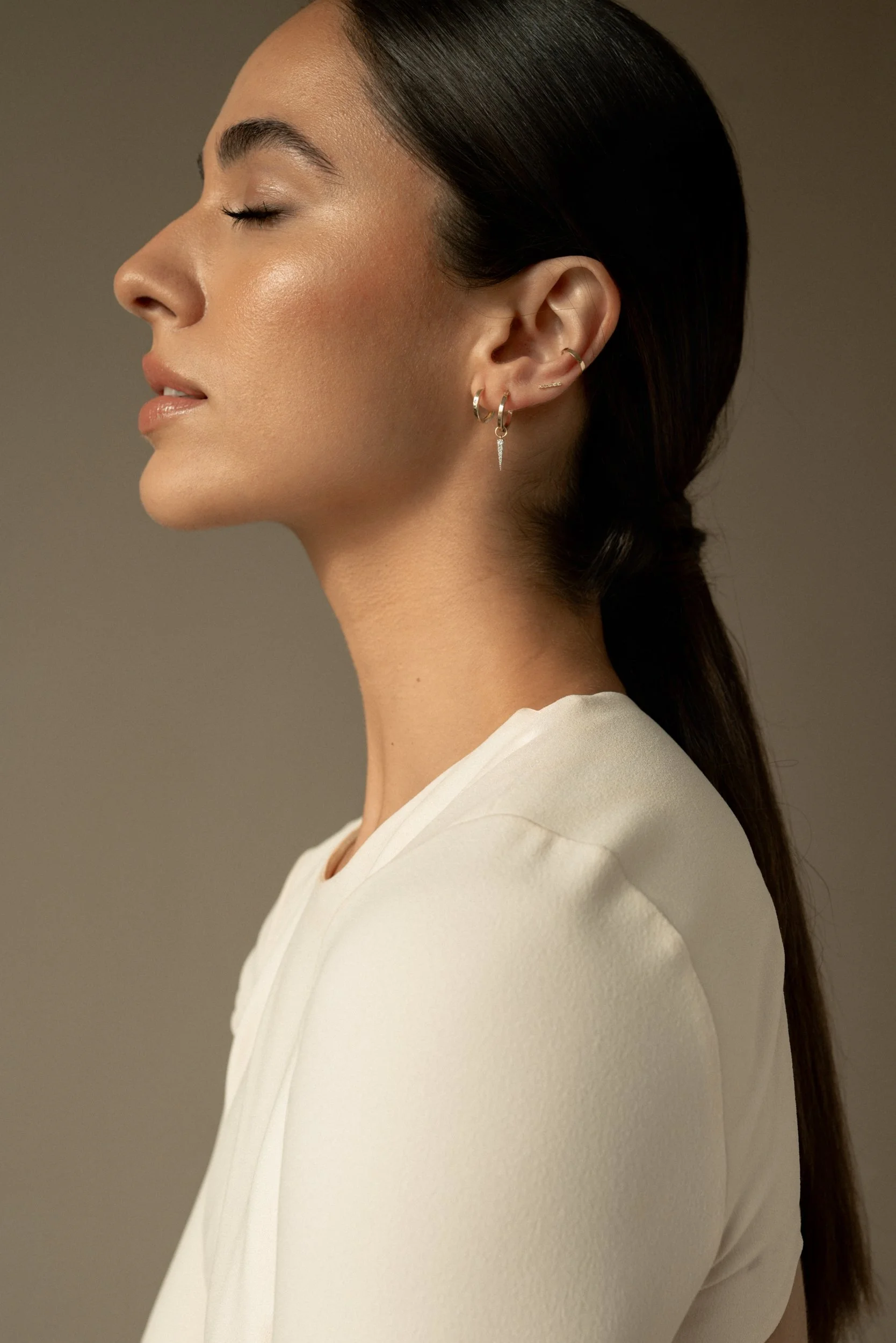 Zoe wore a fitted ivory two-piece with a clean neckline that let the pieces take centre stage. Neutral ivory tones against Zoe's warm olive skin and gold is a combination that feels both timeless and effortless